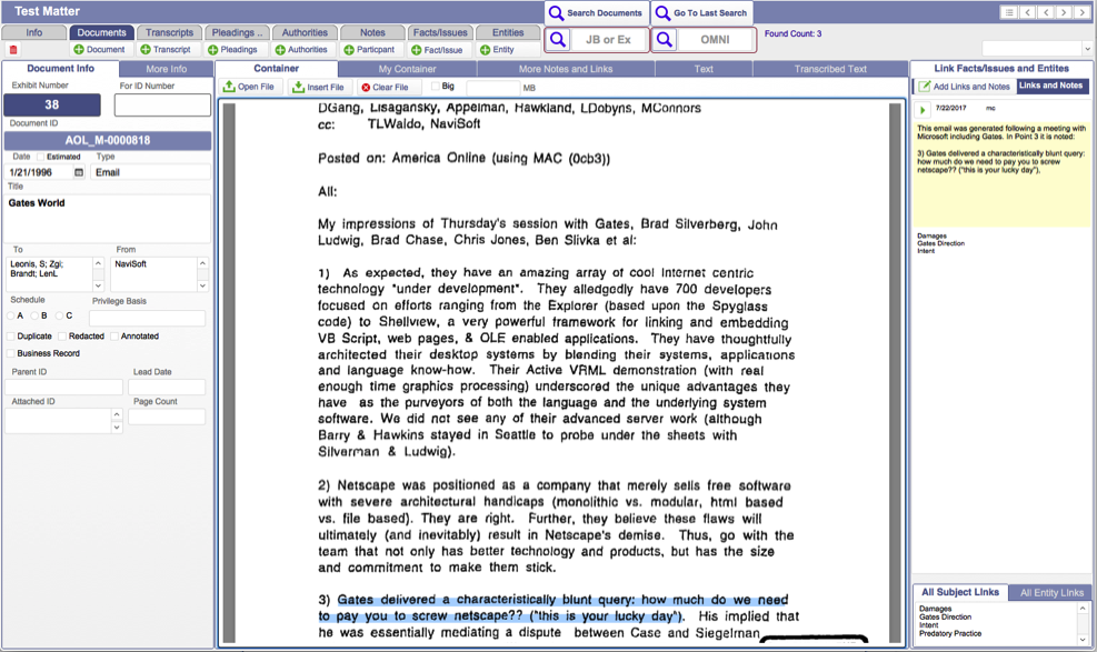 - Build and share a repositiory of all your document productions, transcripts , pleadings and authorities