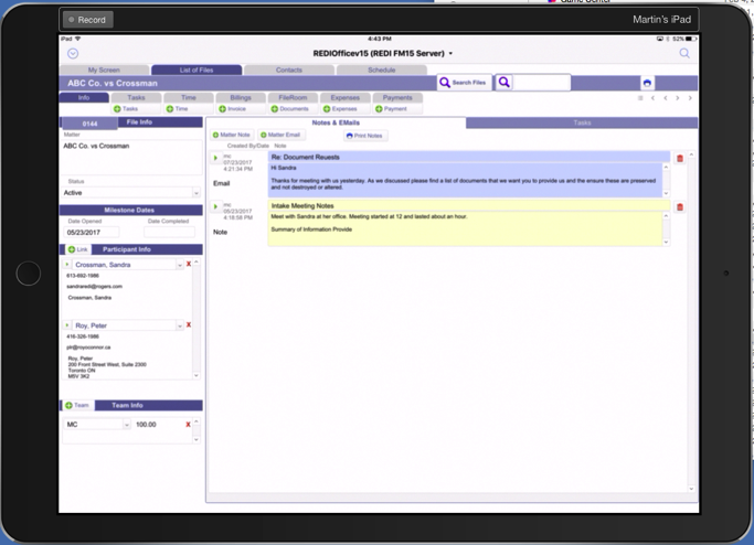 Practice Management software to track your case and related information. Time tracking, billing, document management and scheduling